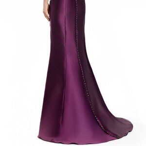 The Alexander by Daymor 3134F25 gown combines structured form with effortless elegance. Layered pleats that flow elegantly over the body and accentuate natural curves make a stunning combination with the off-the-shoulder neckline. Its mermaid silhouette adds a delicate flair that strikes a mix between poise and drama. It is a remarkable option for evenings that need polished elegance because of the concealed rear buttons and smooth finish, which radiate sophisticated charm.