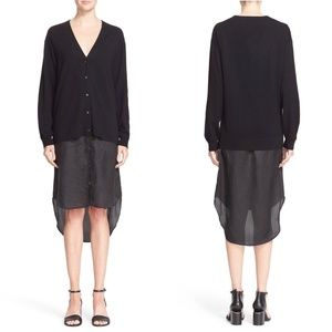 NWT T By Alexander Wang Women's Sweater Black Merino Wool 8 Button Cardigan Long Sleeves Mix Media Contrast V Neck