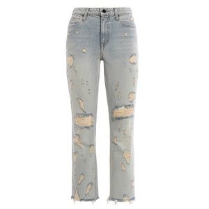Alexander Wang Grind Scratch in Bleach. Worn out denim high waisted jeans featuring all over rips, five pockets, belt loops, zip and button fastening. Denim X Alexander Wang collection. 100% Cotton •Size 24: 26" inches Inseam, 12" inches Waist •Size 25: 26" inches Inseam, 13" inches Waist •Size 28: 26" inches Inseam, 14" inches Waist