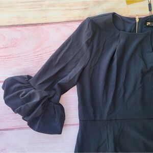 NWT Alexia Admor Black Round Pleated Neck Half Bell Sleeve Mini Dress