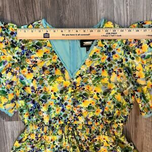 NWT Alexia Admor Maxi Slit Dress Flutter Sleeve Yellow Teal Floral Women’s Sz 6