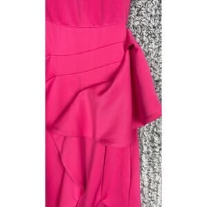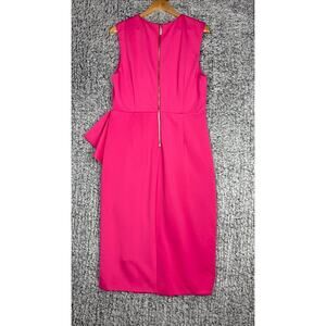 The NWT Alexia Admor Valeria Dress in hot pink is a stylish and vibrant option for women looking for a standout piece. This crew neck dress features a slit thigh design, making it perfect for a party or cocktail event. Made of polyester material, this knee-length dress is machine washable for easy care. With a sheath style and XL size, this dress is ideal for the summer, fall, and spring seasons, and is a fashionable choice for casual or dressy occasions.