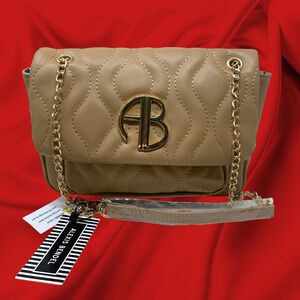 NWT Alexis Bendel Quilted Crossbody Bag Purse in Beige Chain Strap Vegan Leather