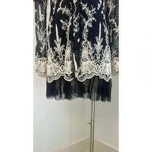 NWT Alexis Black Lace Dress White Floral Embroidery Elegant Designer Tunic Style