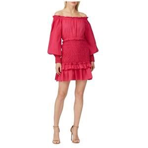 New with Tags Alexis Marilena Dress Size M Smocked Polka Dot Off-Shoulder Pink Orange Dots Mini