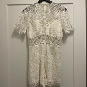 NWT Alexis romper with beautiful lace detail. Perfect for a bridal party, all white summer party or just a perfect summer day! Tags as shown. No flaws.