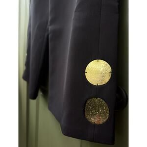 Sleek mid‑rise trousers cut with a cropped flare for leg‑lengthening polish. Clean front waistband, hidden side zip, and statement gold coin plaques at the hem echoing iconic vintage buttons—dress‑code ready for cocktails, gallery nights, or holiday parties. Fully lined; fabric drapes without clinging.