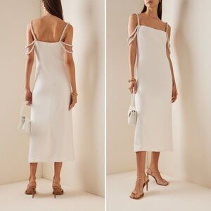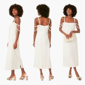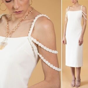 Timeless and chic, the White Shayanne Dress features a square neckline and embellished tri straps in a midi style. This sophisticated, yet bold piece is perfect for your next event and will be sure to bring in lots of compliments. Pair with heels and your favorite clutch and let the dress do the talking.