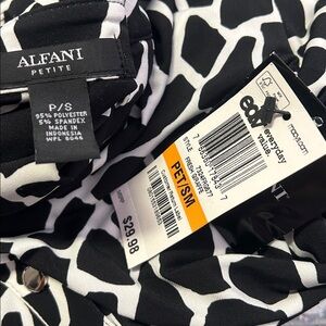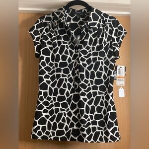 NWT! Alfani Black White Giraffe Print Slinky Short Sleeve Top size S MSRP $29.98