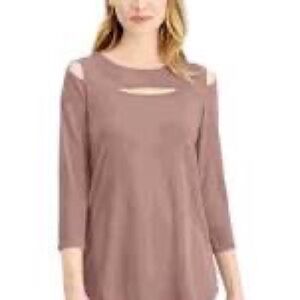 NWT Alfani Cutout 3/4 Sleeve Mocha Large Blouse