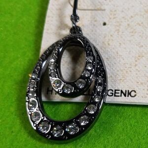 Black colored metal Pierced Double ovals Clear crystals Sold as pictured