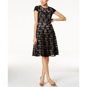 NWT Alfani Lace Fit & Flare Dress, Created for Macy's Black W/ Tan Lining Size 8