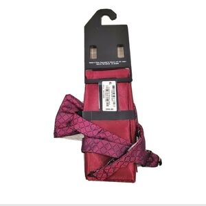 NWT Alfani Mens Malone Grid Red Satin Pocket Square Bow Tie Set O/S
