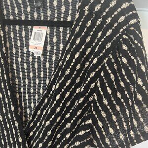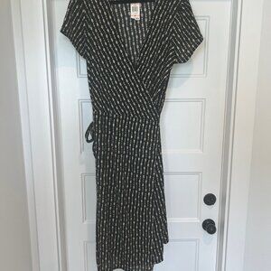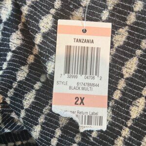 NWT Alfani Size 2X Black/Beige Geometric Print V-Neck Tie Waist Midi Wrap Dress