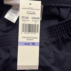 NWT Alfred Dunner All Around Elastic Waist Cotton Short Twill Pants size 18 navy