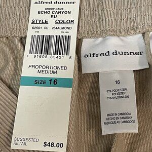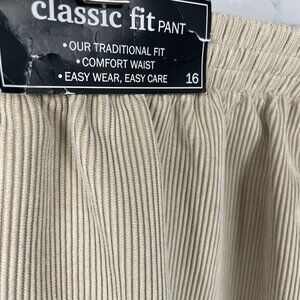 NWT Alfred Dunner Beige Corduroy Elastic Waist Lightweight Pants Size 16 (34x30)