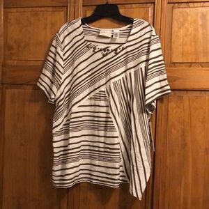 NWT Alfred Dunner Cream Brown Stripe Embellished Blouse 1X