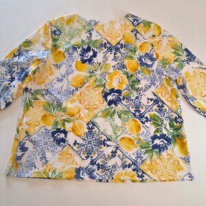 NWT - Alfred Dunner Lemon & Floral Print Top, 2X Yellow/White/Blue/Green Floral