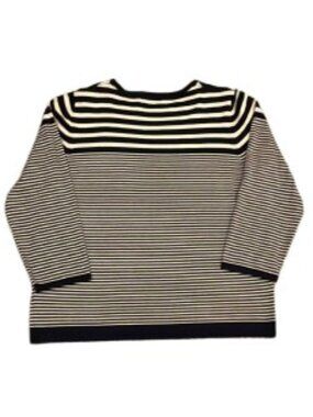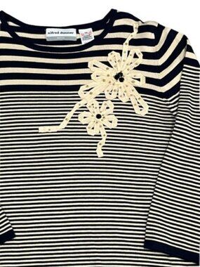 NWT Alfred Dunner Petite Black & Cream Strip 3/4 Sleeve Knit Top Sweater