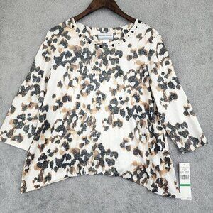 NWT Alfred Dunner Petite Leopard Print Top Sleeve PL 28CT