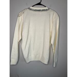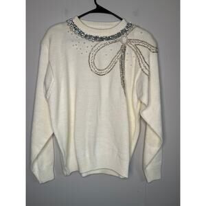 NWT Alfred Dunner Soft Cream Silver Pearl Bows Coquette Kawaii Kei Sweater XL
