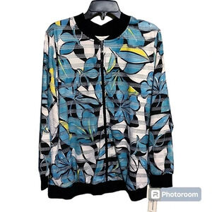NWT Alfred Dunner Womens 18W Play Date Jacket Hawaiian Floral Tropical Zip Front