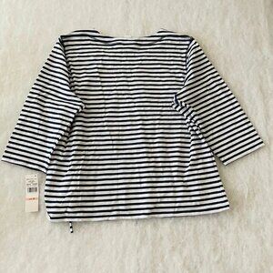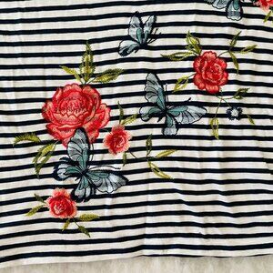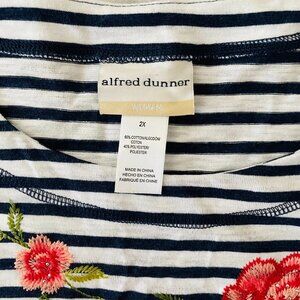 NWT Alfred Dunner Womens White & Navy Striped Floral Embroidered Top Size 2X