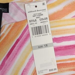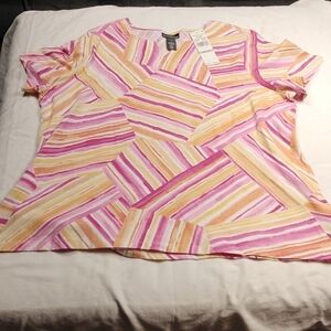 NWT Alfred Dunner women's colorful top size 1X. Some of the stitching on the right side bottom is coming loose on the back