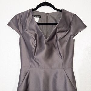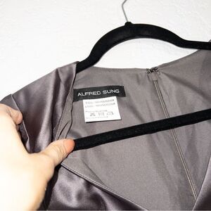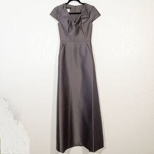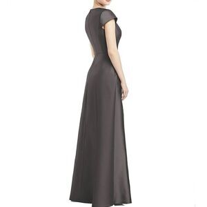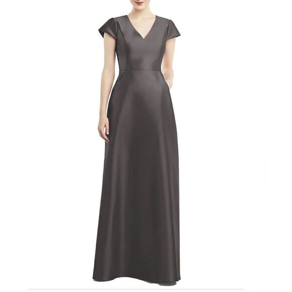 NWT Alfred Sung Caviar Gray Cap Sleeve V-Neck Satin Gown Size 0