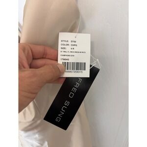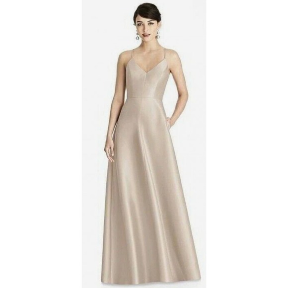 NWT Alfred Sung Champagne V Neck Spaghetti Strap Formal Maxi Gown Size 4R