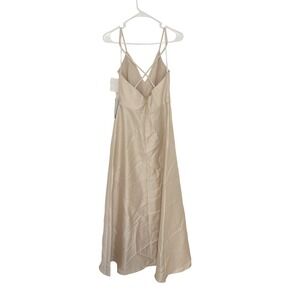 Keywords: Alfred Sung dress, champagne formal dress, twill maxi dress, V neck gown, spaghetti strap dress, formal evening dress, wedding guest dress, prom dress, bridesmaid dress, party dress, elegant dress, special occasion dress, size 4 dress, black tie, bridal, bridesmaid
