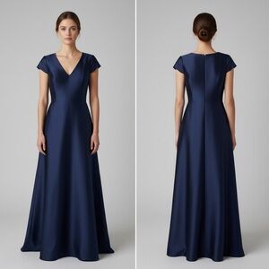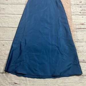New with tags Alfred Sung D772 high neck cutout satin twill dress dusk blue colored