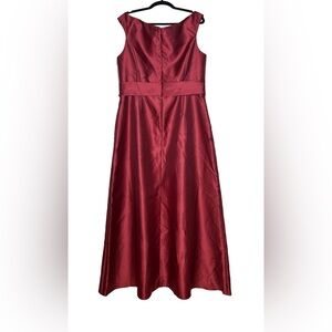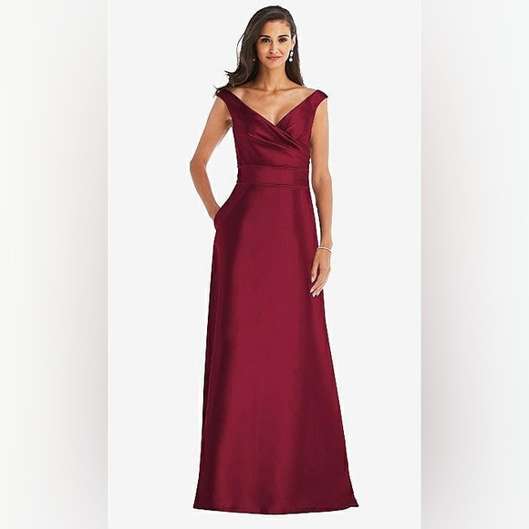 NWT Alfred Sung Off-the-Shoulder Draped Wrap Satin Burgundy Dress, Size 18 R-1