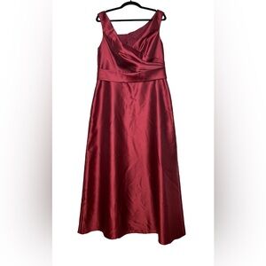 Alfred Sung Off-the-Shoulder Draped Wrap Satin Burgundy Maxi Dress with Back Center Zip, Lined, Size 18 R-1.