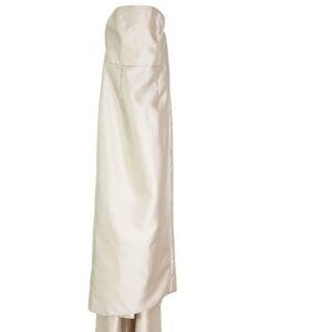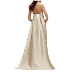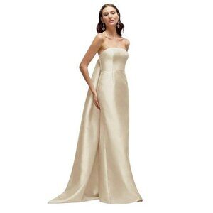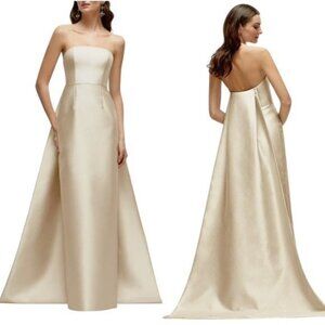 NWT Alfred Sung Strapless Satin Twill Column Gown Removable Train Champagne