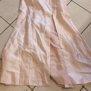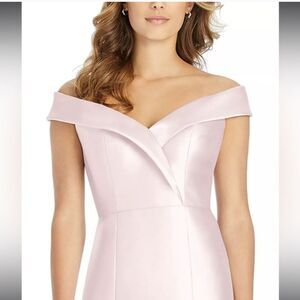 New with tag Alfred Sung Off-Shoulder Blush Pink Dress. Wrap top, has leg slits and is lined. Beautiful Satin Twill, steam or iron before wearing. Size 10 please see measurements pictures to be sure of fit.