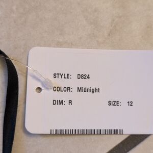 New with tag Alfred Sung style D824 Jewel Neck gown maxi trumpet Dress in Midnight dark Navy Blue. Leg slit in front. Open back with a bow at the back of the neck. High-quality Satin twill. Lined. Size 12 please see measurements pictures to be sure of fit. Retail: $240 Offers welcome!