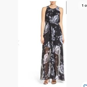 NWT Ali & Jay Ruffle Maxi Dress, Black Floral Sz M