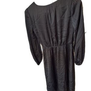 Brand new with tags! This elegant black midi dress by Ali & Jay features a flattering V-neckline, long puffy sleeves with elastic cuffs, and a sleek side zipper for easy wear. Crafted from lightweight crepe fabric, it’s perfect for both casual and dressy occasions.