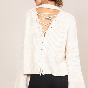 NWT never been worn Alicante knit sweater from Showpo with trendy and unique back!! Wish I could keep just too big on me. Also shipping is very expensive since it is from Australia so you are saving on that.