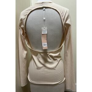 NWT Alice McCall Peach 'Every Day Top' Open Back Cold Shoulder Ribbed Shirt-8US
