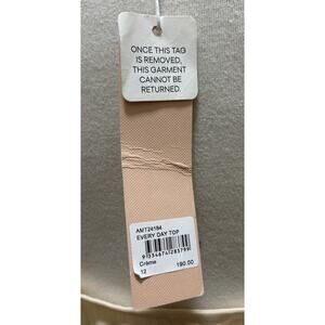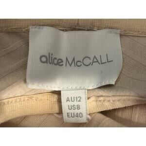 The product is a NWT Alice McCall Peach 'Every Day Top' in a size 8US. It is a stylish cold shoulder ribbed top with a round neckline and open back. New with tags.