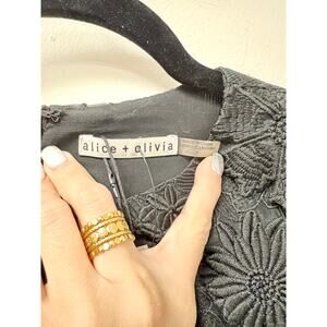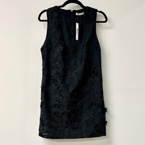 NWT Alice + Olivia 3D Floral Lace Embroidered Mini Shift Dress Black Women's 4