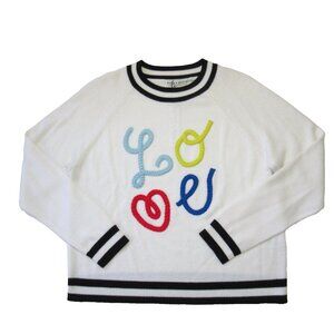NWT Alice + Olivia Albina in Soft White Black LOVE Wool Pullover Sweater S $440