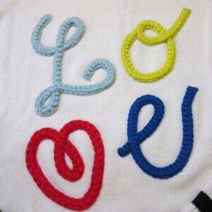 Details: * Albina is spreading a message we stand by L O V E and it features crochet letters, varsity stripes at the neck and wrists, plus a relaxed fit. It's the perfect pullover to keep handy for whenever you need to feel cozy. Dry clean. Import. *