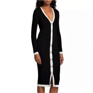 Alice + Olivia Black and Soft White Alcina Rib Knit Sweater Dress