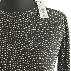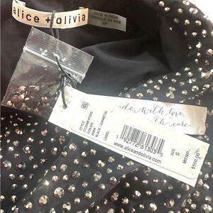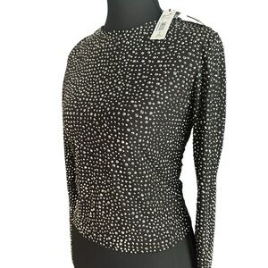 NWT Alice + Olivia Black and Silver Studded Long Sleeve Blouse Size S