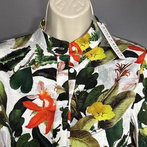 NWT Alice + Olivia Cailin Size XS Button Front Mini Dress in Tropical Sunrise Cotton