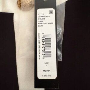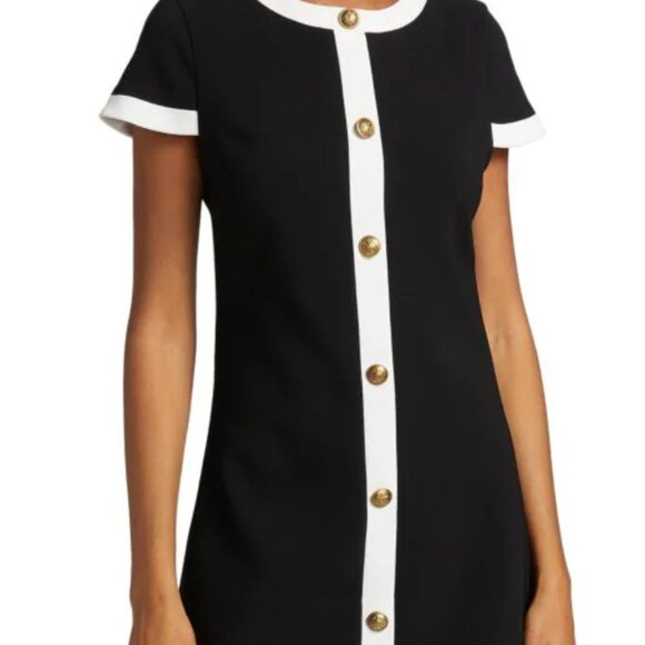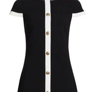 NWT Alice & Olivia Coley Button Mini Shift Dress Black/White Women Size 0