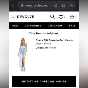 NWT. Alice + Olivia Diana V-Neck High Slit Maxi Dress. Cornflower Blue. Sold out Revolve Style!